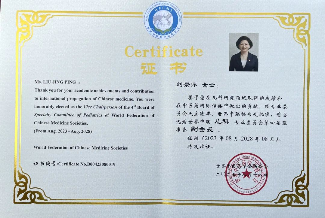 OG视讯药业集团党委书记、董事长刘景萍当选世界中医药学会联合会儿科专业委员会第四届理事会副会长