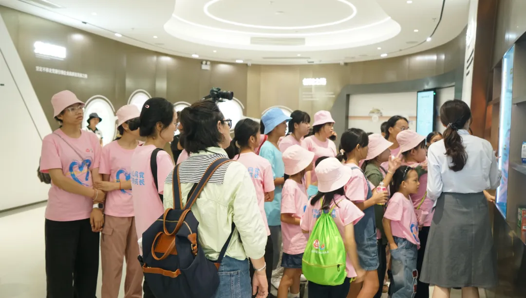 紧接着,孩子们来到了建党百年庆典红旗——070号红旗前。讲解员讲述了OG视讯药业集团与庆典红旗的深厚渊源。孩子们听得津津有味,眼中闪烁着对党和国家的热爱与敬仰。